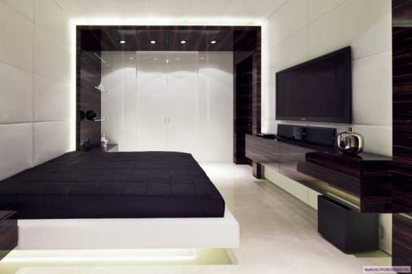 Современный интерьер с использованием глянцевых и зеркальных поверхностей создает иллюзию объема — ремонт маленькой спальни, дизайн, фото