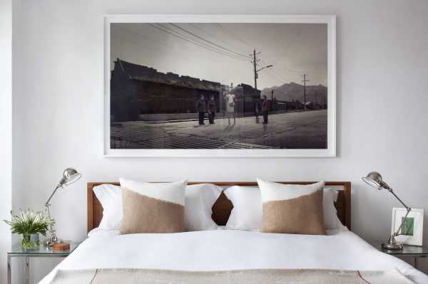 Чтобы отвлечь внимание от площади комнаты, используйте большие картины и постеры. Повесьте над изголовьем кровати большую, а лучше даже великоватую картину, которая станет главным фокусирующим элементом.