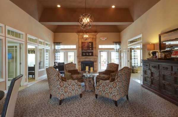 Основным элементом помещения станет камин и несколько кресел, что указывает на высокий статус владельца жилья.