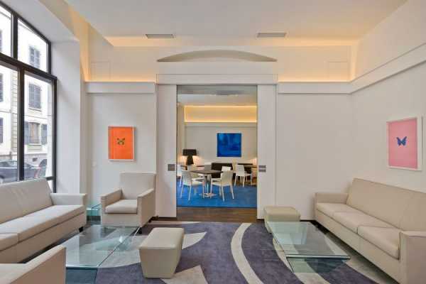 Белоснежный потолок, стены и пол украшают это открытое пространство. Яркий и чистый «холст» становится чудесным фоном для красивой мебели. Пурпурный, оливковый, морской и жёлтый отменно сочетаются в номере.