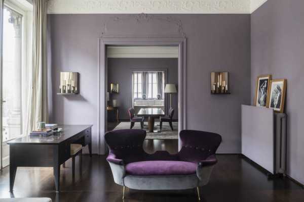 19. Интерьер красивой гостиной с лиловыми акцентами