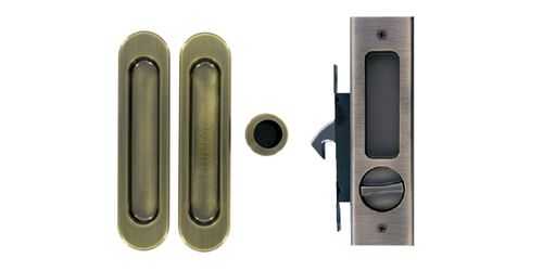 - Врезные ручки для раздвижных дверей с защелкой. Их основное отличие от предыдущего варианта рукоятей заключается в наличии механизма, позволяющего управлять защелкой – открывать ее, когда это необходимо. Такой механизм несколько отличается от привычного варианта для распашных дверей – и дело здесь не только в размерах. Зачастую, чтобы высвободить защелку из ответной планки, приходится поворачивать либо небольшую рукоятку округлой формы, либо перемещать ползунок. И та и другая деталь дверной ручки для раздвижной двери помещается в выемку самой ручки, что дает возможность дверям свободно работать даже в самых стесненных условиях, как это бывает в случае с кассетными дверями.
