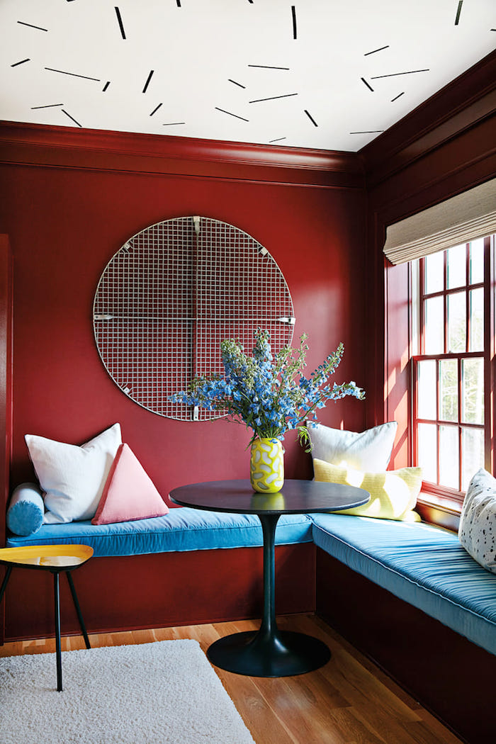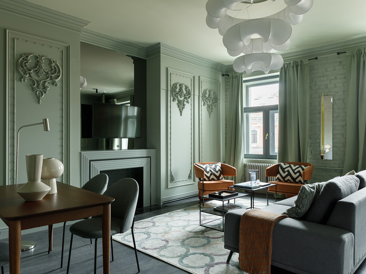 В гостиной уже можно использовать цвета ярче и узоры посмелее.