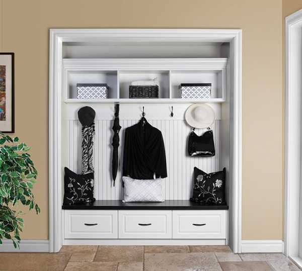 - если места так мало, что установить открытую вешалку для наиболее востребованной верхней одежды не получается, на боковой стороне шкафа купе можно монтировать крючки. Хорошо, если на уровне 150 см от пола у шкафа будет боковая полочка, на которой можно оставлять шляпы;