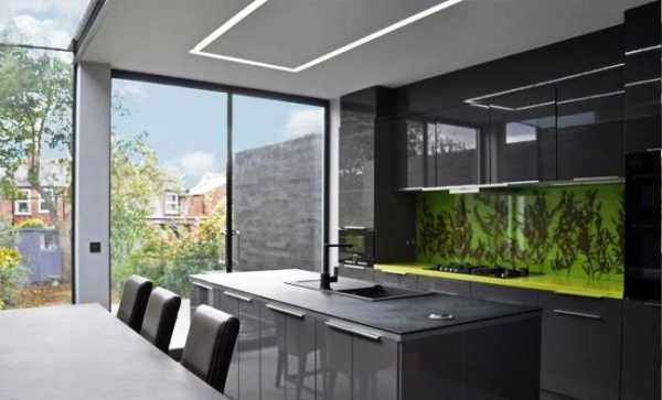 Наиболее хороши стеклянные фартуки в интерьерах, интерпретированных в духе модерн, супер техно и, конечно же, хай-тека.