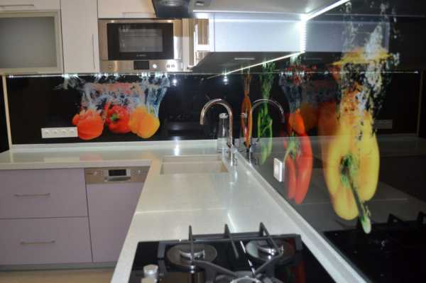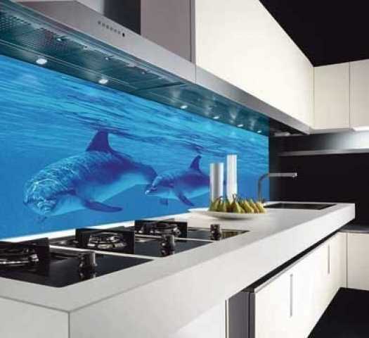 «С помощью стереопечати рисунки на стеклянной основе скинали для кухни получают 3D эффект»
