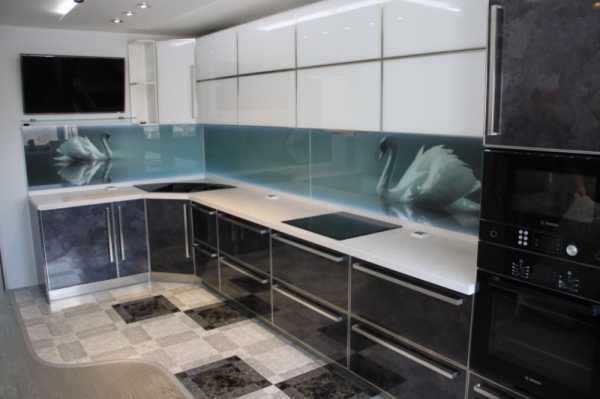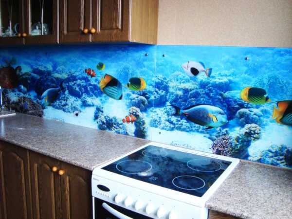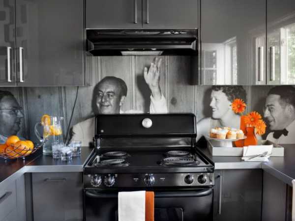 Замена привычной керамики в отделке фартука на необычную панель из стекла придаст обстановке индивидуальность. Такой декор может претендовать на звание эксклюзивного, особенно, если на панно появятся кадры, повествующие о вашей личной жизни.