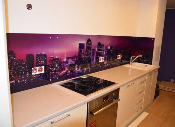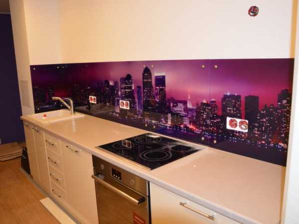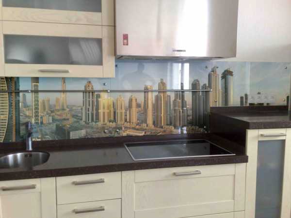 Как выбрать стильное скинали на кухню? Такой вариант будет иметь подсветку. Красиво будет смотреться изображение, какого ни будь города. Представьте себе ночной Париж, да еще и отсвечивается.
