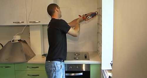 В чем разница между клеевым и крепежным способом? Первый применяется в том случае, если стена идеально ровная; второй используется когда кухонные стены имеют неровности.