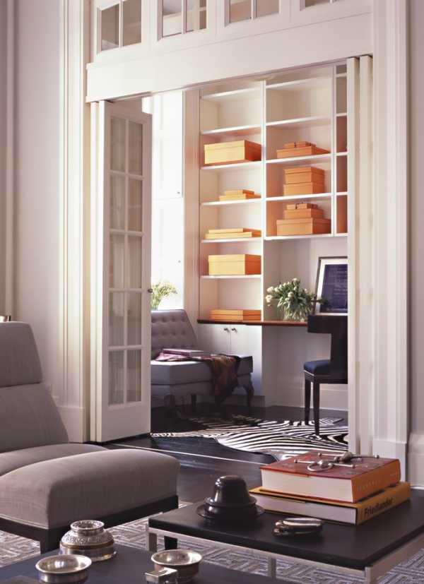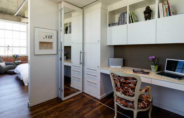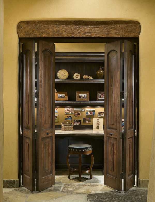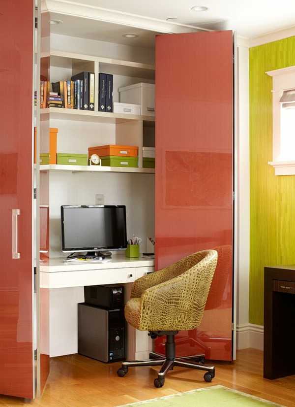 Яркая дверь-гармошка скрывает компактное рабочее место