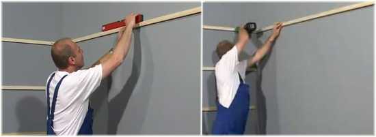 - На стены крепится каркас из деревянных реек 40х20 мм.