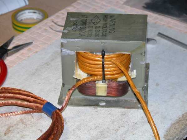 Главным компонентом в нём считается преобразователь (трансформатор), его можно создать из бывшего автотрансформатора или же из преобразователя, изъятого из микроволновой печи. Если используется последний вариант, то вынимая трансформатор из микроволновой печи нужно быть предельно осторожными, чтобы не навредить основной обмотке.