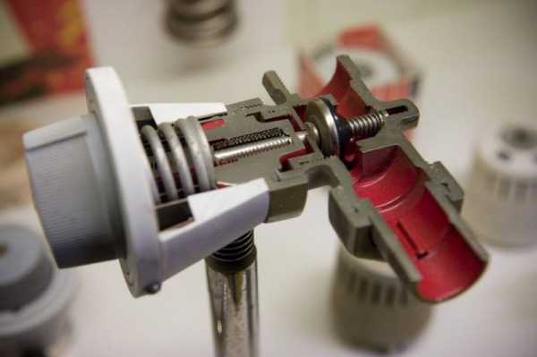 Устройства данного компонента включают два элемента – запорный конус и седло. Запорный механизм и обеспечивает перекрытие промежутка для перемещения теплоносителя. Клапан выбирается в зависимости от типа разводки. Они различны для однотрубной и двухтрубной разводки, что видно на фото терморегулятора на батарею.