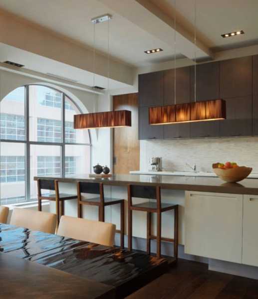 Так для кухни лучше всего подойдут простые светильники, без лишних узоров и украшений. Это облегчит уход за ними, ведь кроме пыли, на них будет скапливаться и жирный налет. Выбирая точечные светильники под натяжной потолок, рекомендуется остановиться на округленных моделях. Это облегчит их монтаж и не нанесет вреда материалу потолка.