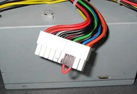Для того чтобы произошел запуск блока питания, необходимо одновременно замкнуть черный и зеленый провода в 20-пиновом разъеме; +12 Вт можно взять из любого желтого провода, ноль — с любого черного.