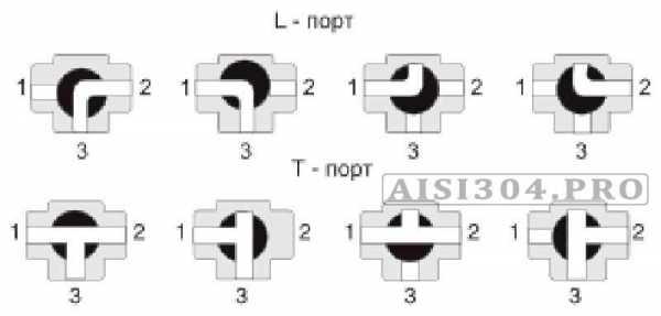 Ниже будет представлена фотография, на которой изображен принцип действия каждого из видов. Поэтому, вы уже сами определяете под свои потребности, какой из них вам подходит больше всего. В любом случае. внутри каждого из них предусмотрено наличие шара, с помощью которого и происходит изменение потока жидкости из одной трубы в другую. Что касается присоединения к трубе, то данные краны изготавливаются исключительно с внутренней резьбой по стандарту ГОСТ. Есть конечно исключения, но они уже касаются кранов трехходовых по стандарту DIN или SMS. Но это специфические изделия и про них мы не будем говорить.
