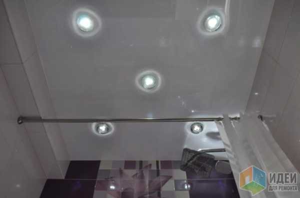 Потолок белый глянец, с 5 светильниками – светло как в операционной.