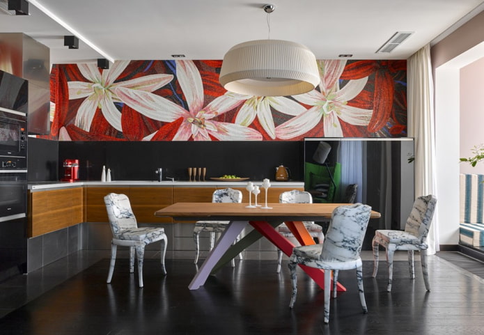 Чаще всего в декорировании кухни данной отделкой, предпочтение отдается зоне фартука. Такое оформление добавляет в обстановку новых красок, создает настроение и прекрасно смотрится в любом стилевом направлении.