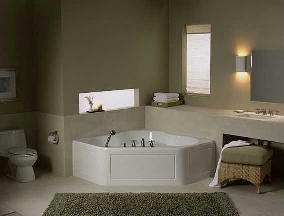 Угловая ванная комната. Дизайн ванной комнаты с угловой ванной фото