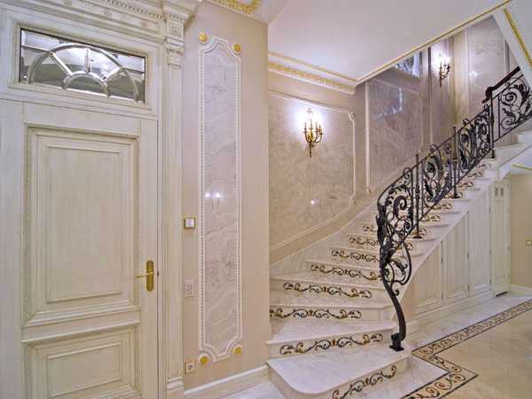 Прихожая «встречает» гостей, поэтому применение здесь эффектной отделки является уместнымДекоративной штукатуркой заменяют дорогие материалы. Она устойчива к истиранию, что помогает исключить случайные повреждения поверхностей в переходах.