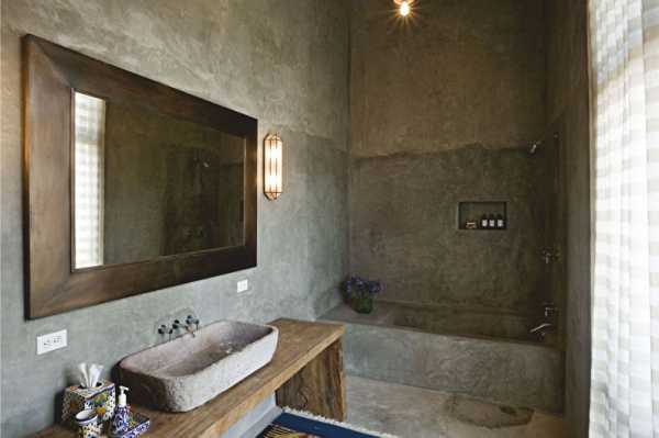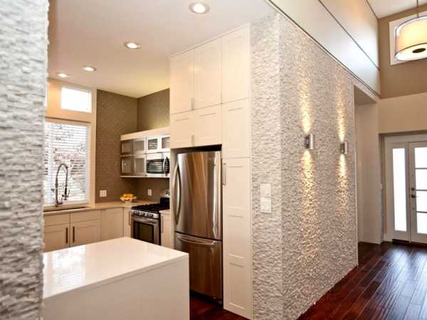 Отлично смотрятся комбинации оштукатуренных стен с другими отделками. Например, структурная декоративная штукатурка и обои, поверхность с глубоким рельефом и однотонные гладкие перегородки. Благодаря своей экологичности материал подходит для кухни, гостиной, спальни, прихожей. А вот для ванной рекомендуется использовать водостойкие разновидности или вовсе избегать нанесения.