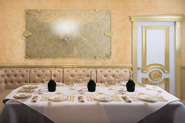 №2386. фото двойного растительного орнамента золотой поталью по венецианской штукатурке