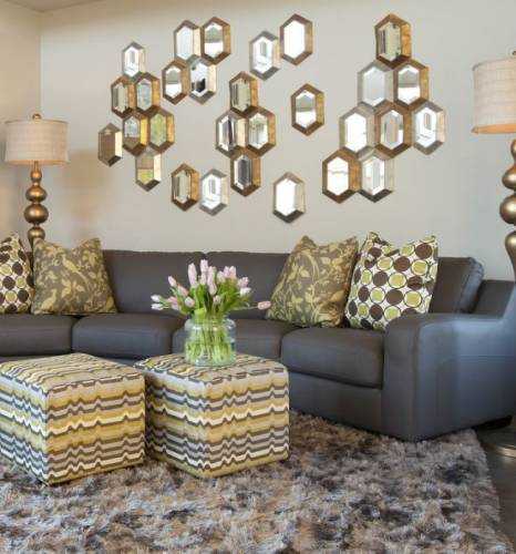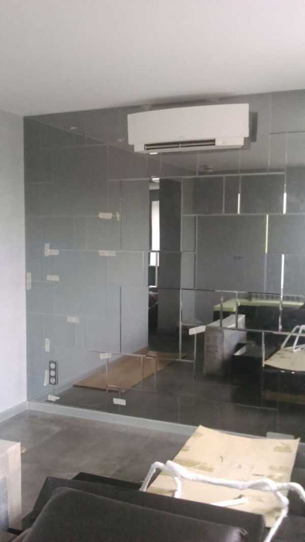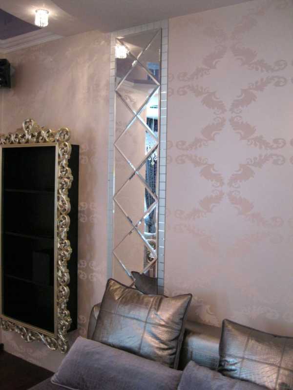 Большое панно в гостиной из зеркал без фацетаОтложить 0 Автор
