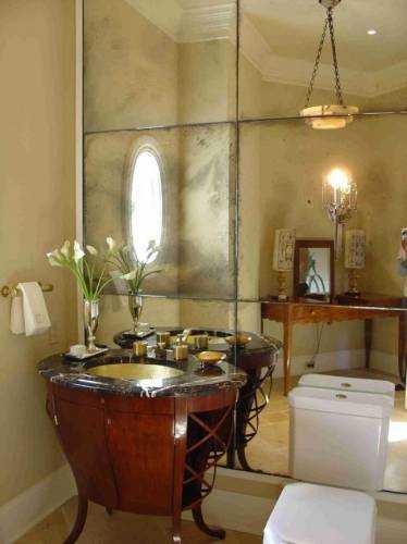 Зеркальная стена с эффектом состаривания в уборной комнате