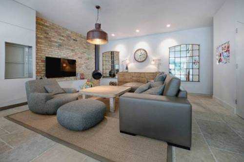 Зеркальные панно, имитирующие окна, в интерьере в стиле лофт