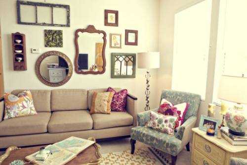 Настенное панно из старинных рам и зеркал, сделанное своими руками