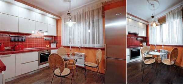 Отлично подойдет для оформления окон на кухне, расположенной с северной стороны, такое помещение он сразу наполнит светом и теплом. Для кухонь находящихся на южной стороне лучше подбирать более нежные оттенки, например абрикосовый или лососевый.