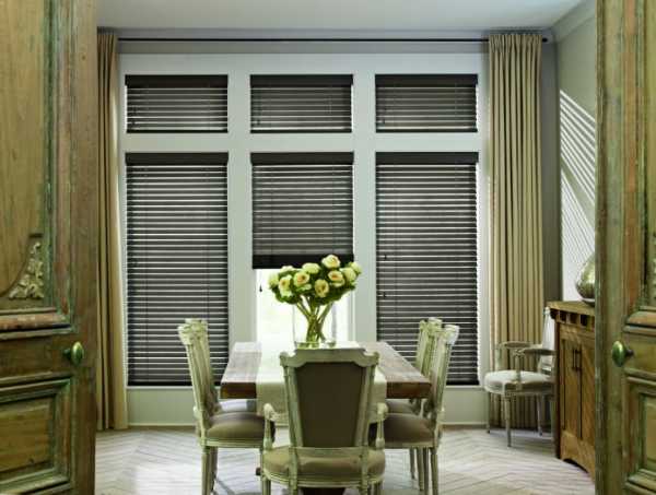 Жалюзи из дерева гармонично сочетаются с любыми предметами мебели в интерьере и позволяют составлять разнообразные интересные комбинации. Однако деревянные ламели не подходят для помещений с высоким уровнем влажности и сухости, так как могут деформироваться и потерять свой привлекательный вид.