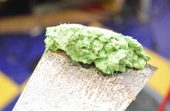 В емкость для замешивания помещают один из выбранных материалов основы — волокна, нити или же и то, и другое одновременно, затем перемешивают с одним из связующих. Пропорции составления массы должны составлять примерно 1:1.