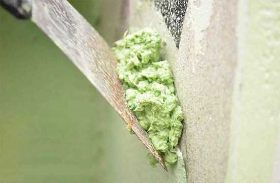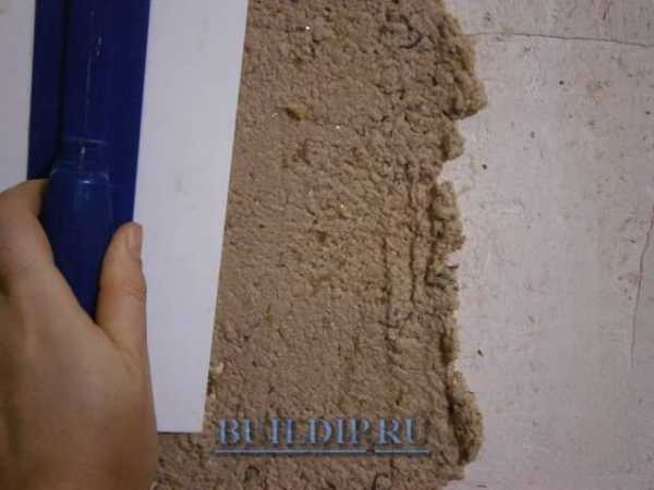 — Непосредственно перед нанесением на стену в массу добавляется гипс, а затем снова ее перемешивают до полной однородности.