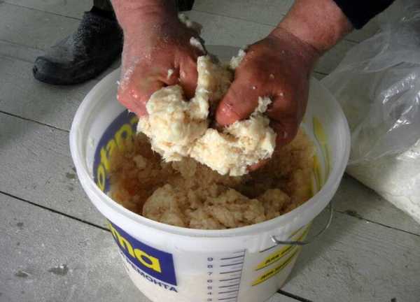 — По истечении указанного срока массу разворачивают и тщательно вымешивают вручную.