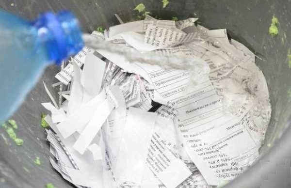 Бумагу измельчают и заливают водой