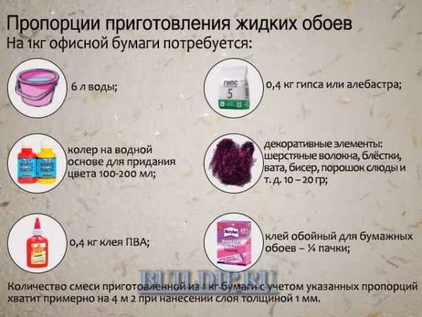 Пропорции для приготовления жидких обоев.