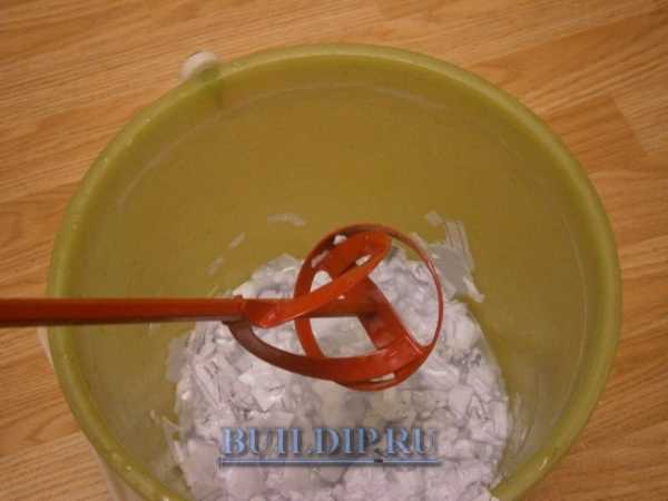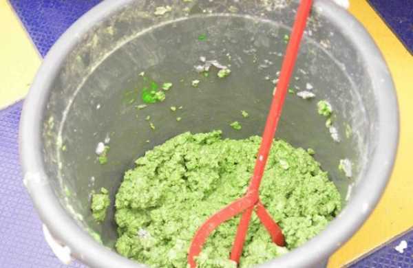 Далее, нужно длительно вымешивать массу до однородного состояния. Нужно отметить, что рекомендовано высыпать в емкость только одну ÷ две упаковки, так как чрезмерно большое количество массы будет очень трудно промешать основательно до полностью однородной консистенции.
