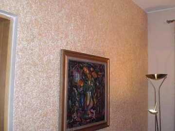 - Для наклейки рулонных материалов нужно тщательное выравнивание стен, а для жидкого покрытия выравнивание требуется только в плоскости, а мелкие неровности будут незаметны после нанесения рыхлой массы.