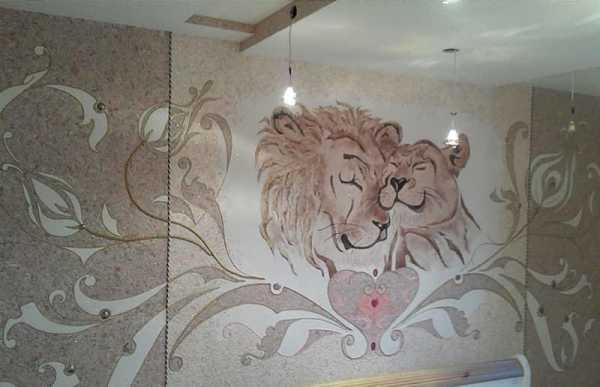 В гостиных обычно присутствует дух какого-то особенного интерьера, выполненный в определенном стиле. Соответственно этому дизайнерскому проекту подбираются и цвета стен и потолка. В каком бы стиле ни предполагалась отделка, всегда можно найти возможность выполнить величественно панно с элементами сочетания различных видов жидких обоев. Такие картины обычно вызывают восторг.
