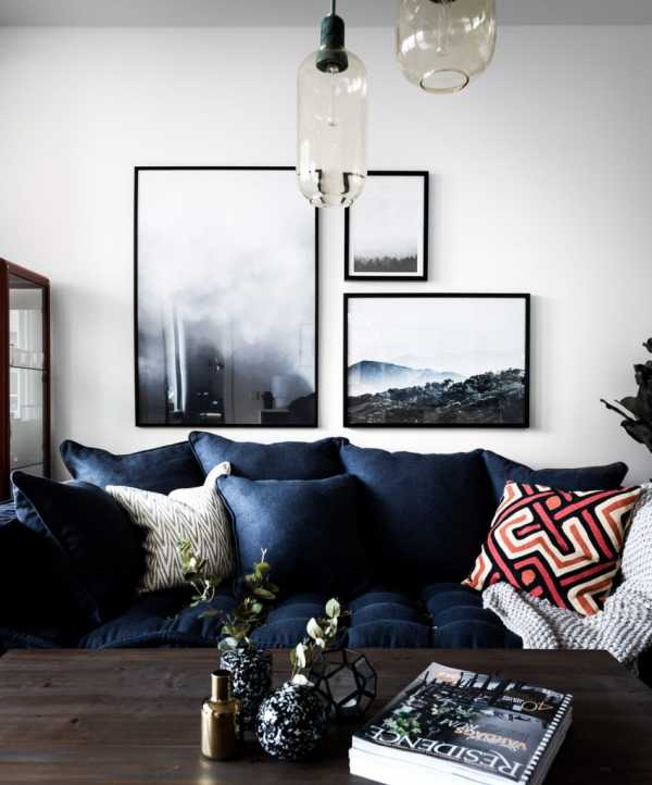 Работать с цветом достаточно сложно: многоцветье разрушает интерьер. Поэтому отдавайте предпочтение черно-белым фотографиям и графике. Уводите цвет в сепию, индиго — эти эффекты смотрятся очень художественно.
