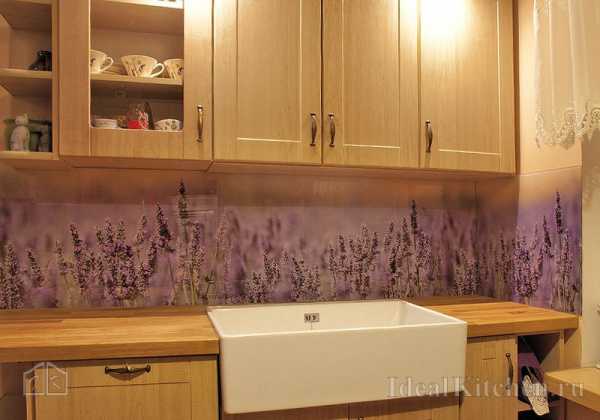 Фартук и столешница – важные элементы кухни. Их предназначение – защищать и украшать кухню. Ручная роспись сделает обычный фартук из плитки лучше. Если выбирают стекло, то декором может быть фото лаванды, оливок или прованских трав. Рисунок наносят на стеклянный фартук.