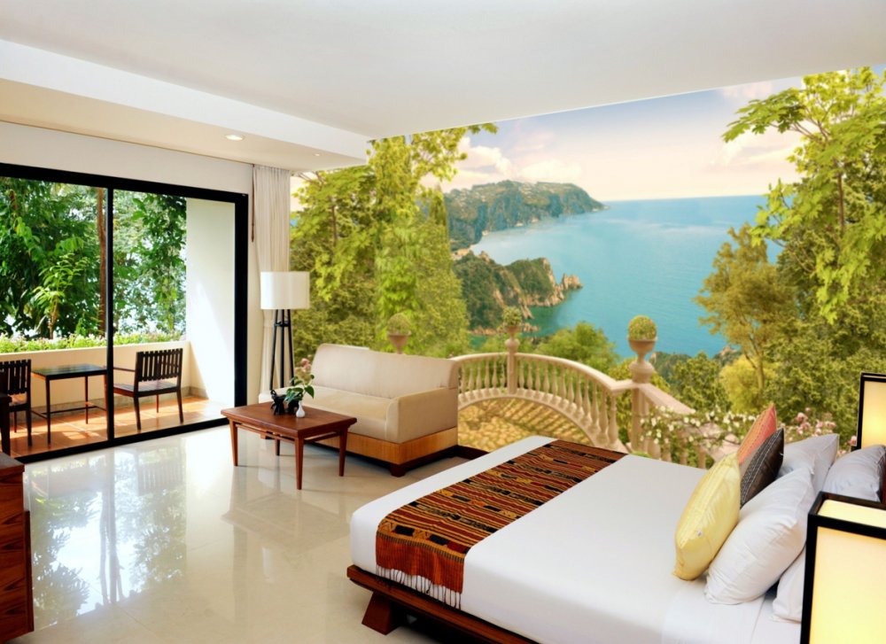 Отличное панно MOD-174-116 Солнечная терраса. Очень долго подыскивали сюжет, чтобы было не избито. Сморятся шикарно. Нам клеили мастера. Сказали, что клеить одно удовольствие. Мы вместе с панно купили и обои, которые идут к ним. ничуть не пожалели. Зал выглядит отлично. Рекомендуем