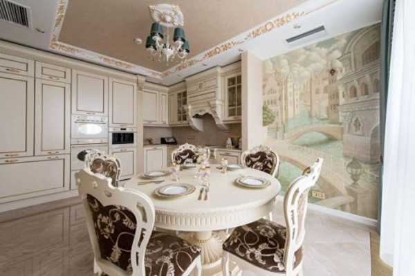 Фотообои должны сочетаться с общим дизайном кухонного помещения.