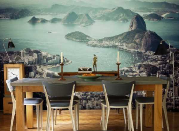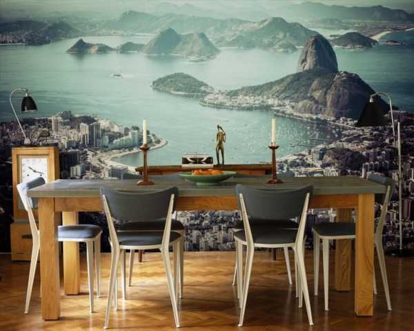 Особенно красиво смотрятся фотообои за обеденным столом.