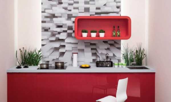 - если проблема тесноты стоит очень остро и необходимо визуально увеличить пространство комнаты, хорошо подходят полотна с глянцевой поверхностью. В интерьере кухни фотообои такого типа занимают особое место, так как отражение предметов в настенном покрытии создает ощущение дополнительного пространства;