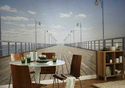 Открывающаяся взгляду перспектива с уводящим вдаль пространством создает ощущение простора. Такое изображение на фотообоях раздвигает стены кухни, а иногда и поднимает потолки.