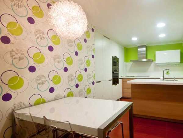 Обои, значительно расширяющие пространство, в интерьере для кухни выполняются из различных материалов. Это может быть бумага и различные виды текстиля, флизелин и винил.