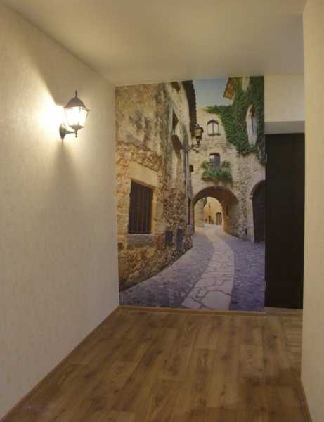 Вариантов оформления интерьера определенной стилистической направленности масса. Применение фотообоев облегчает задачу соблюсти единую линию дизайна. Приведем простые и органичные примеры оформления коридора:
