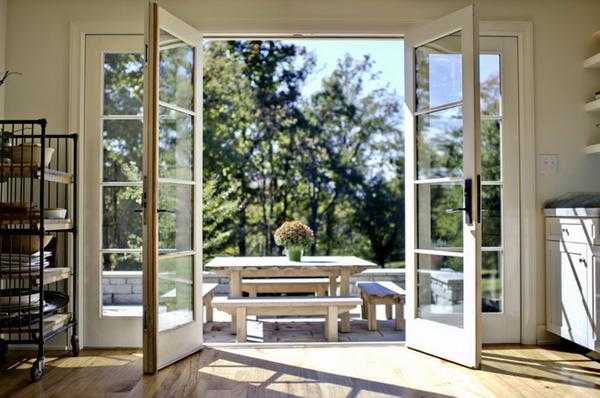Открытые французские окна в теплое время года позволяют в полной мере насладиться погодой